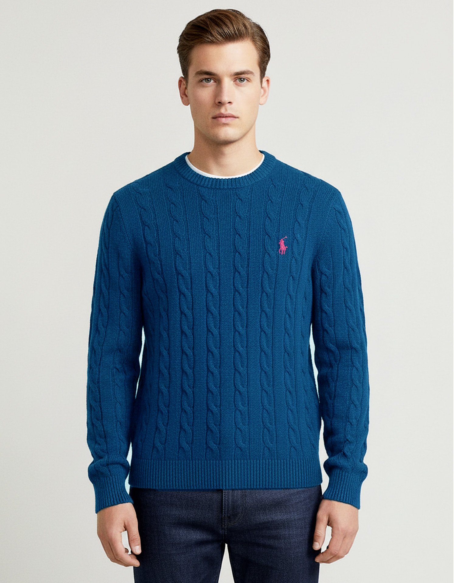 Men’s Cable – Knit Cotton Navy Blue Sweater - maxpointbd.com